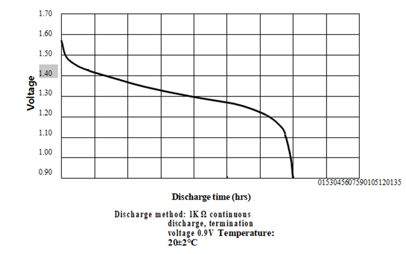 Discharge load: 1kΩ; discharge time: 24 hours/day continuous discharge; termination voltage: 0.9V Note: Prefabricated cells must be tested within 30 days of delivery |