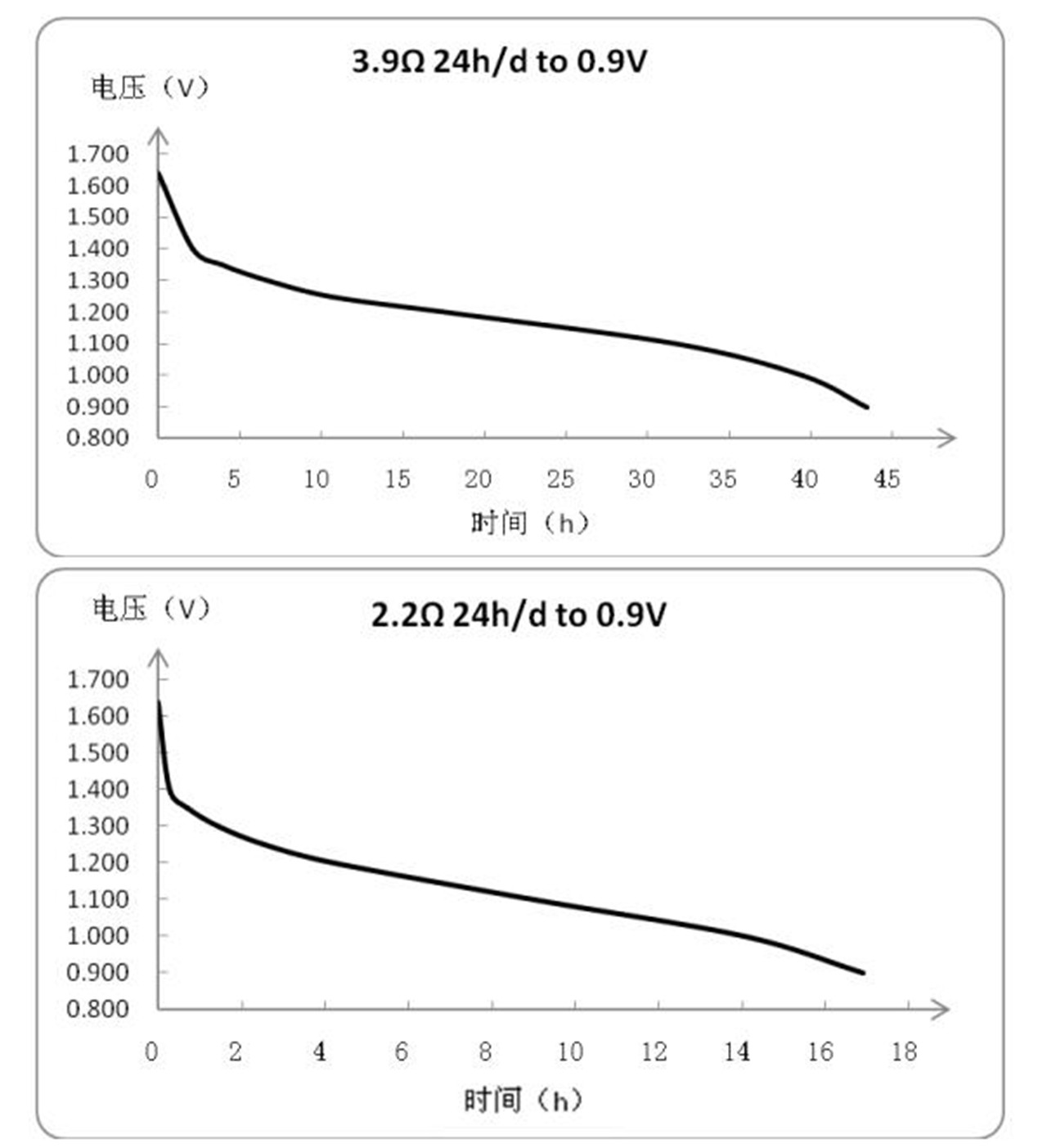 Continuous discharging 48h in 20±2℃, huminity60±15%, load 10Ω condition.