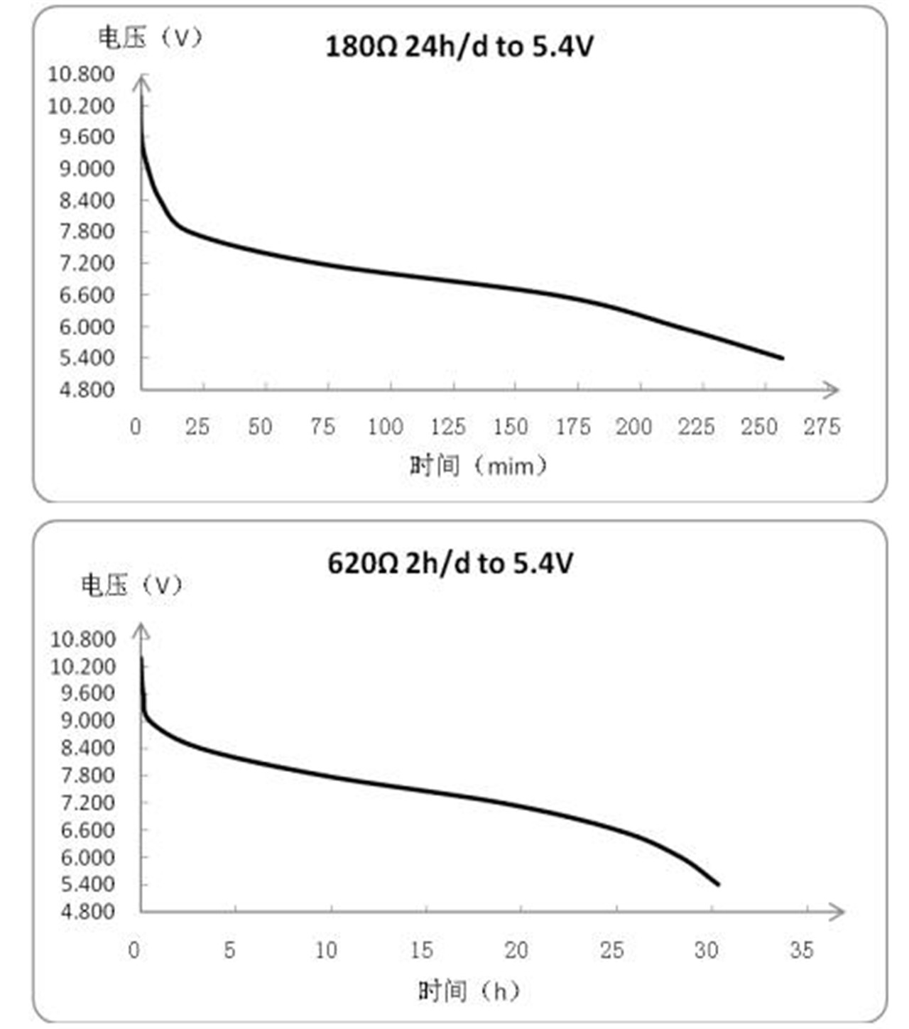 discharge capacity:150mAh(load 180Ω, 24h/day, 20±2℃,RH60±15%, final